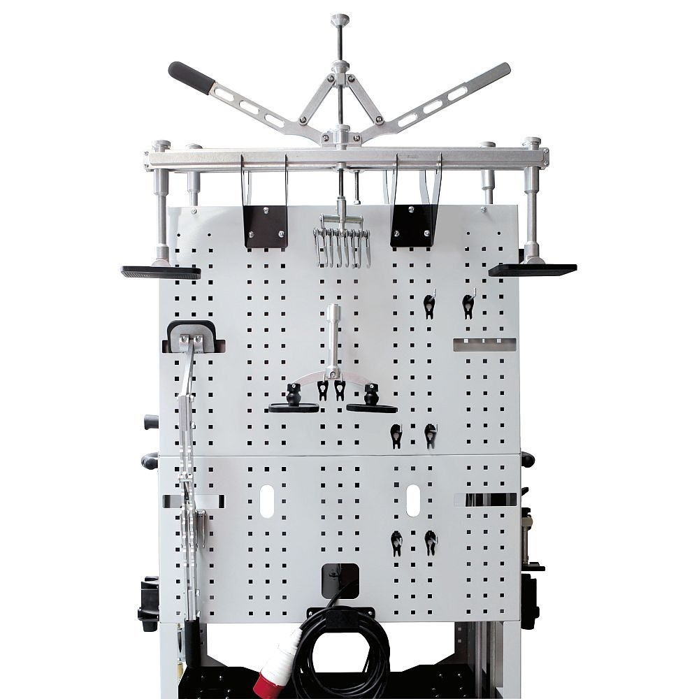Because it is a comprehensive system, it is known as an ausbeulstation. It has the cart, the power unit, and numerous pulling attachments in one convenient location.